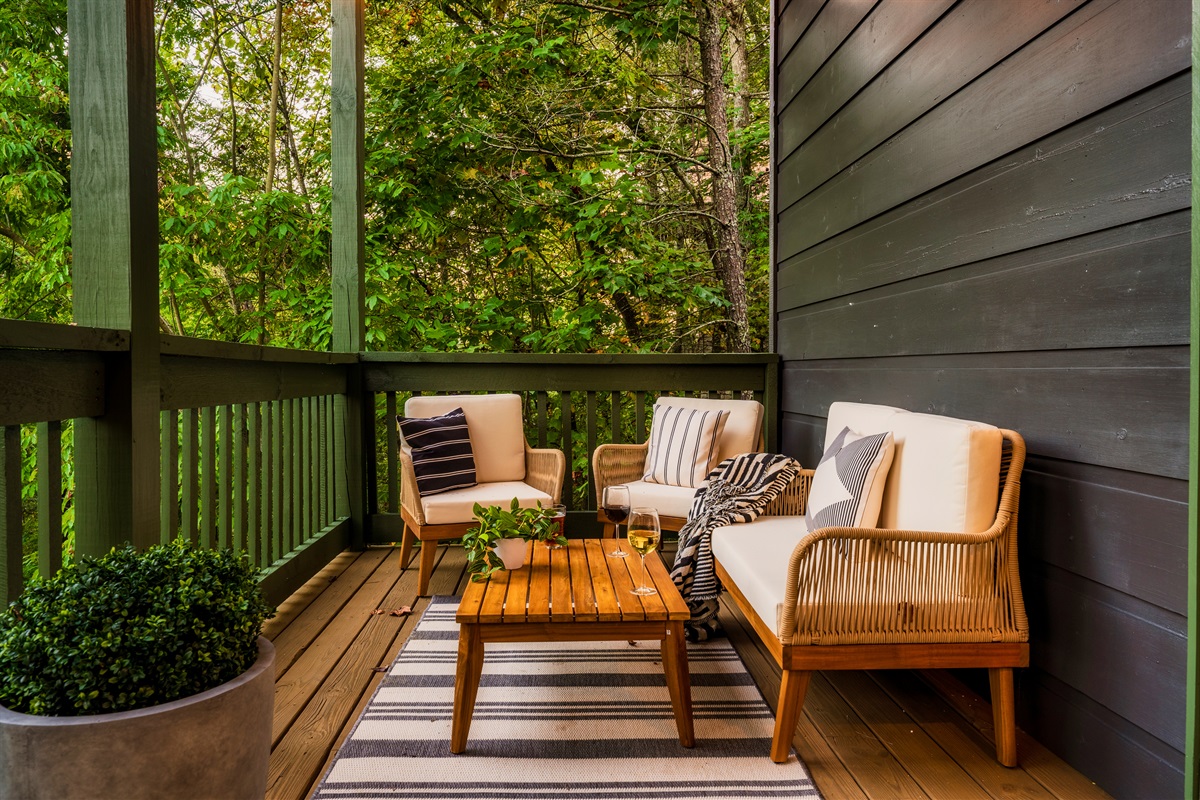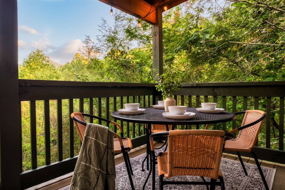 Savor mountain views from the private balcony, where the breathtaking ambiance beckons eternal stay.