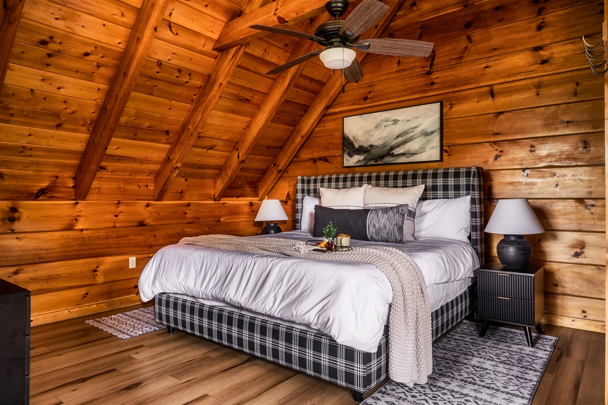 Fall asleep in comfortable King bed and wake up with mountain views from the loft. Ensuite bathroom has everything you need to get ready for bed. Catch up on some work at the desk so that you can enjoy the rest of the vacation worry free.