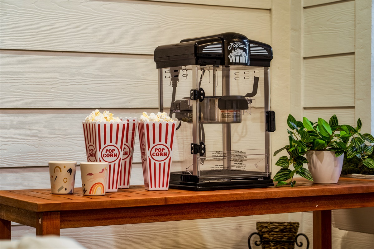 Hosting a trip with the kids? Sit back and enjoy a movie while they splash around.