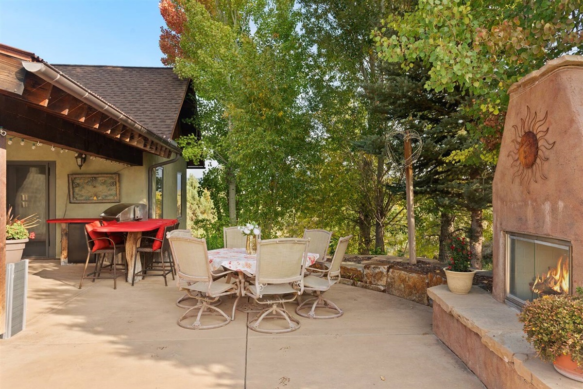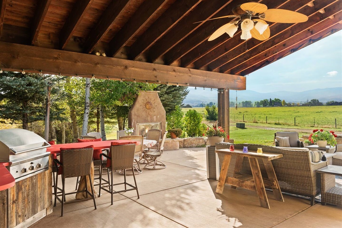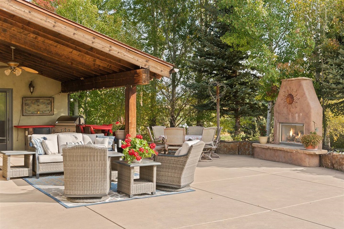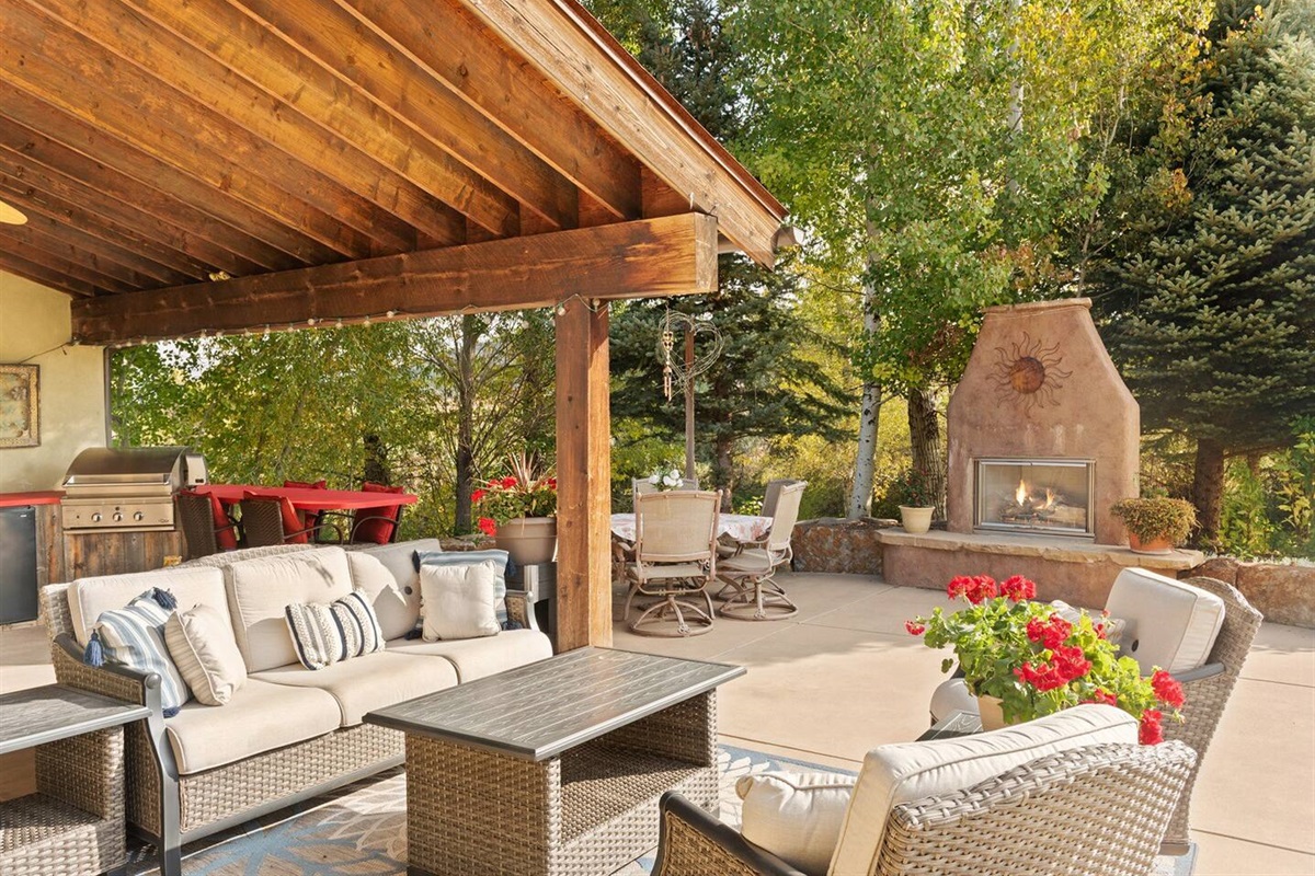 Travel through the connecting exterior door to the kitchen to access your spacious patio equipped with a built-in gas grill, patio lounge furniture, outdoor eat-at bar and dining table, and large gas fireplace at the far end. Illuminate your bistro lights as the sun sets to create an ambiance you'll remember for ages as you enjoy the company of your friends and family. No matter the time of day, a panoramic view of Mount Sopris will always grace you with its inviting presence.