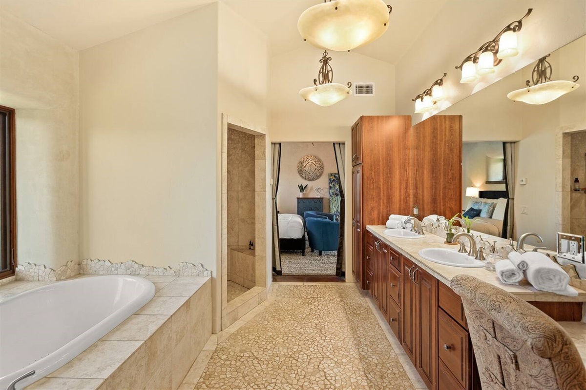 The layout of this main floor is perfected with the master suite with a large sliding glass door to the patio and views of Mount Sopris beyond. Your brand-new king-sized bed with plush linens awaits. Connected to the bedroom is your master bathroom featuring beautiful tiling, a separate shower, and a spacious soaking tub and picture window. Also on the main level of the home is a dedicated laundry room, mud room, and powder bathroom.