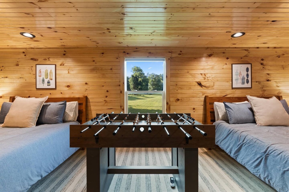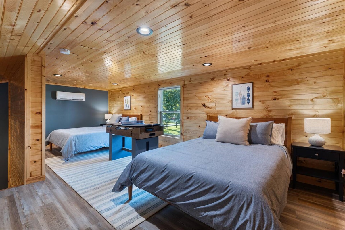 - Spacious loft with two queen beds featuring the loved Zinus mattress