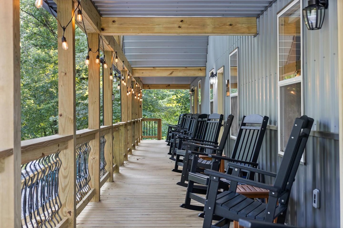 - Rocking chairs to lounge in throughout the day as you listen to the rolling river