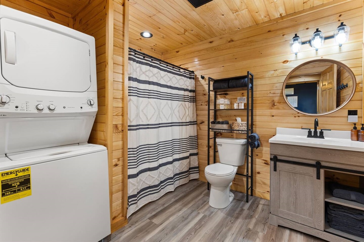 - Washer/dryer stackable unit inside the bathroom (laundry pods and dryer sheets included)