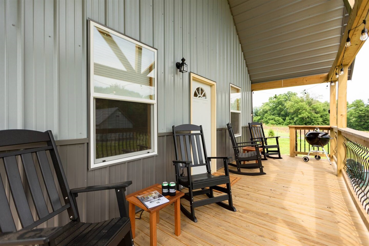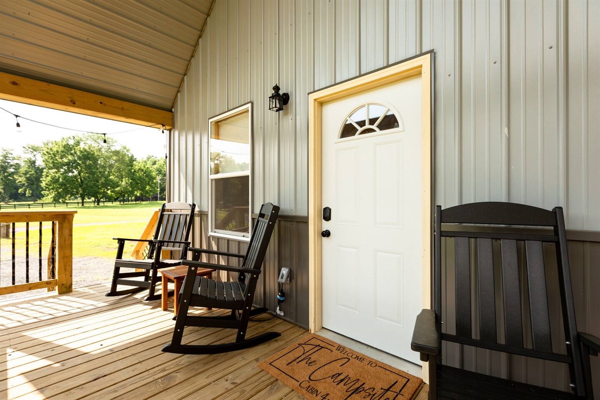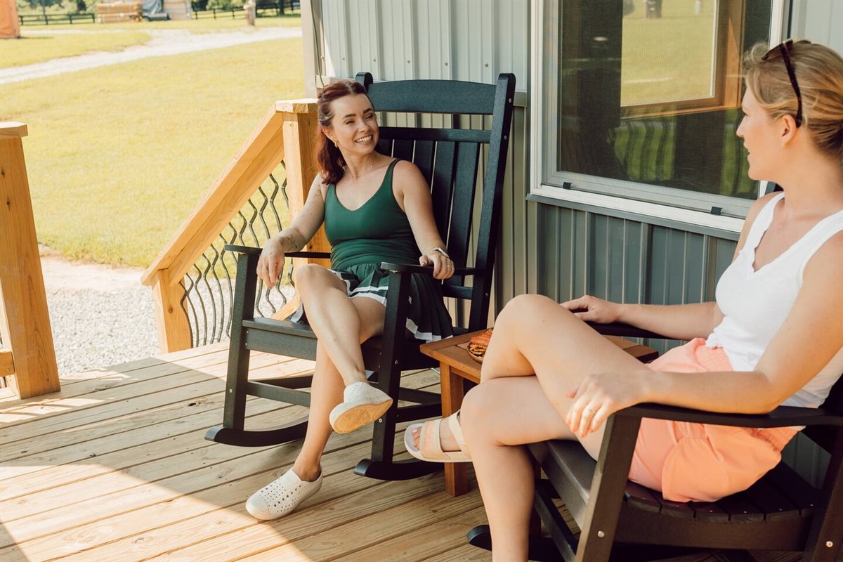 - Rocking chairs to lounge in throughout the day as you listen to the rolling river