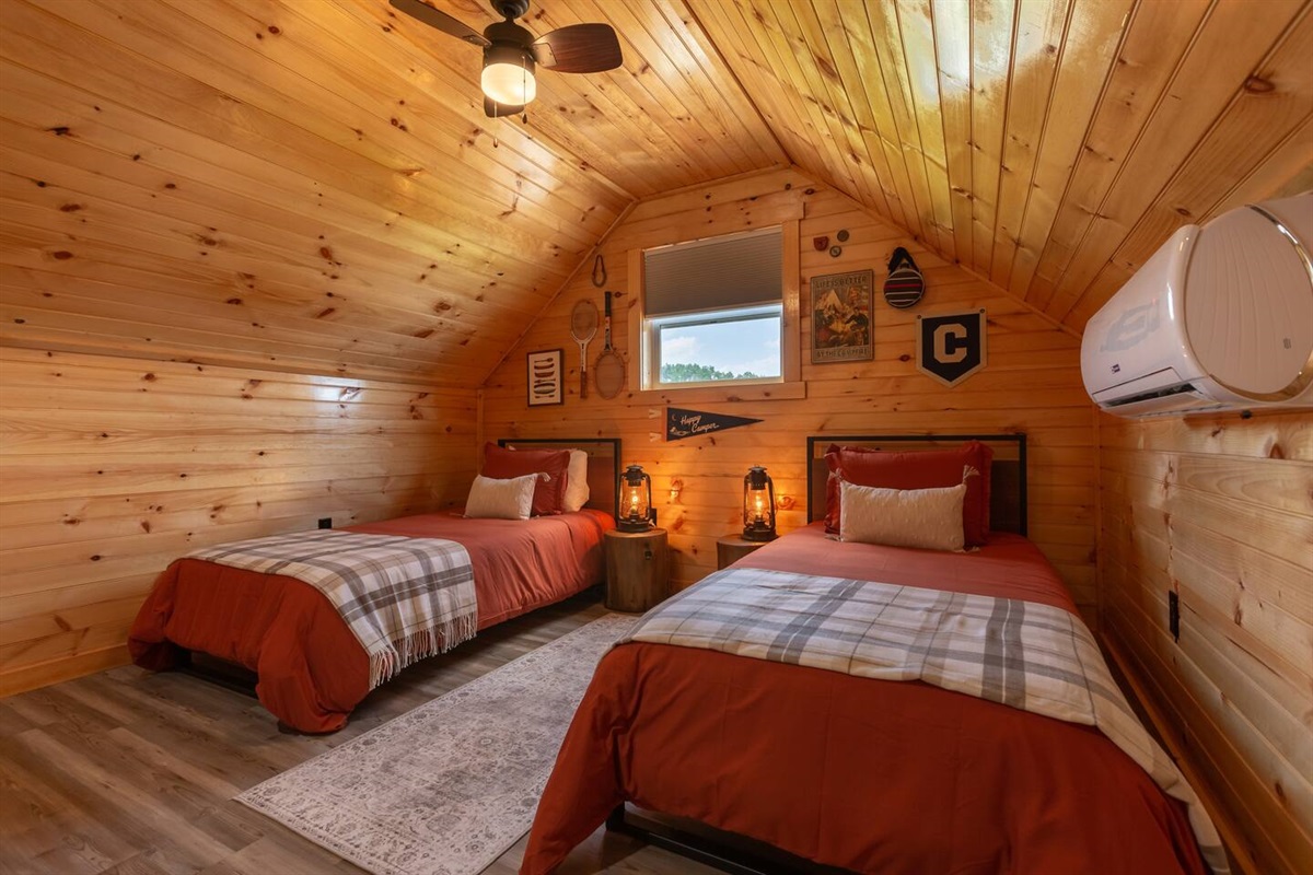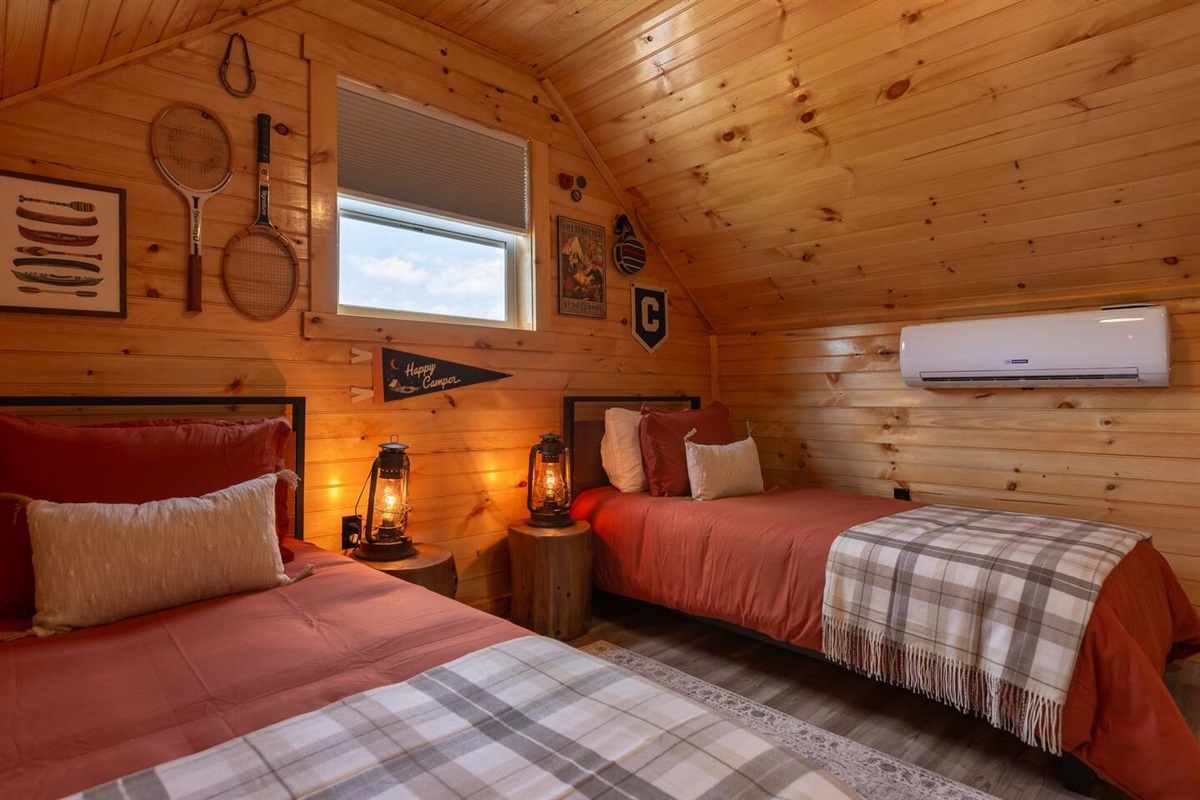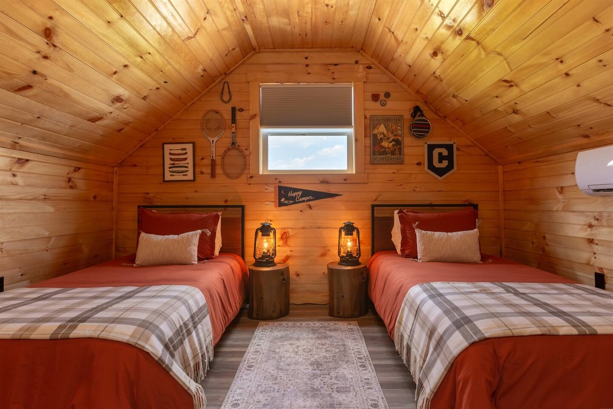- Cozy space with two twin beds featuring the loved Zinus mattress