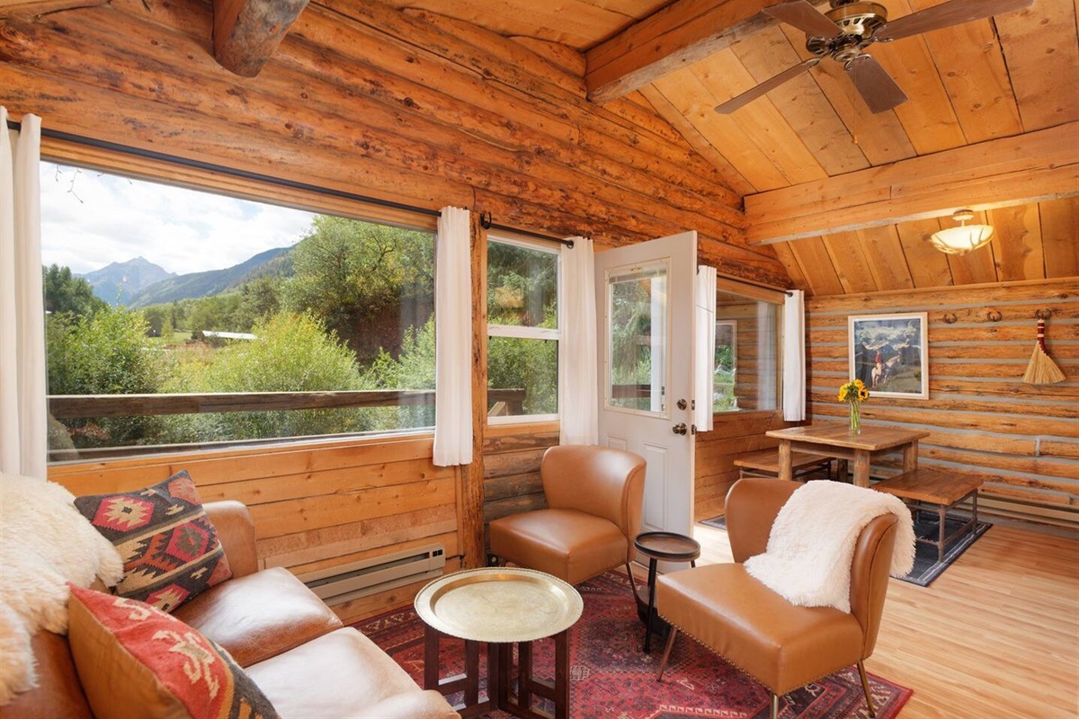 Adventure + relaxation collide with our Nature's Edge Cabin. Nestled alongside Willow Creek, this cabin is part of the 200+ acre ranch that has been part of Aspen's history since the late 1800's. Your cabin sits on the edge of the Maroon Bells-Snowmass Wilderness and is the closest non-camping accommodations to the world-famous Maroon Bells. Giving a nod to the heritage of mountain living, exposed wooden beams on the interior and exterior create a warm, inviting atmosphere.