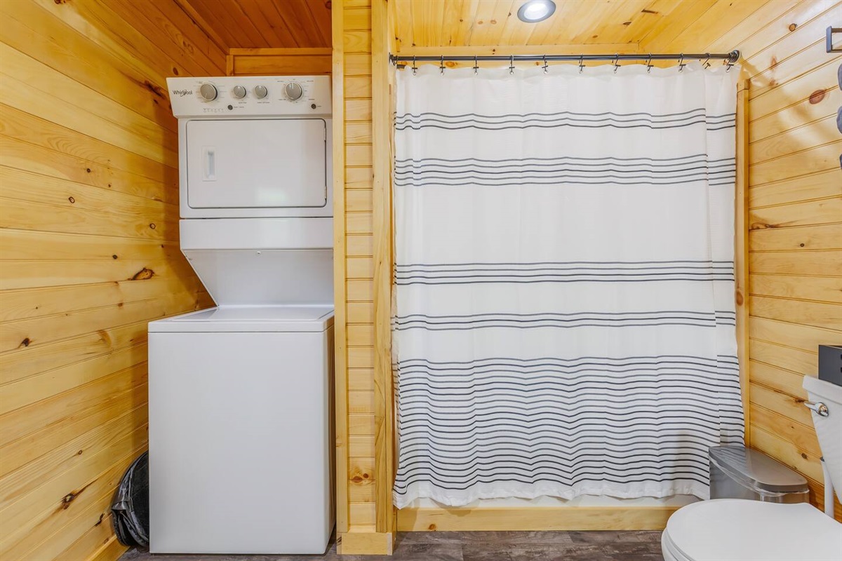 - Washer/dryer stackable unit inside the bathroom (laundry pods and dryer sheets included)